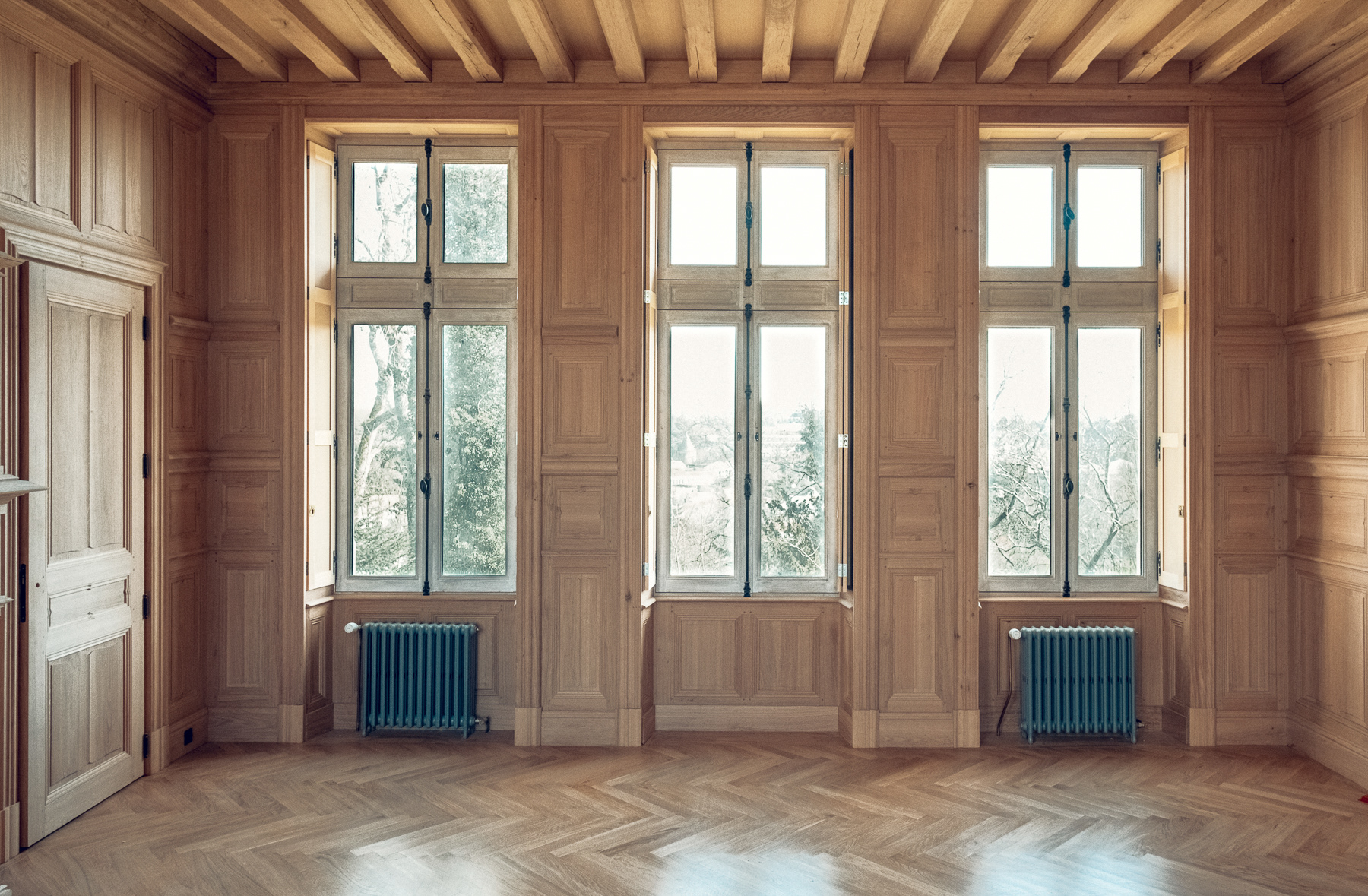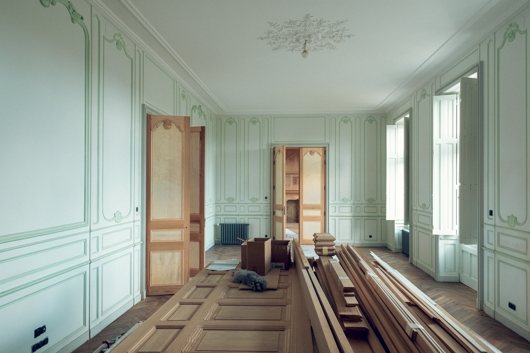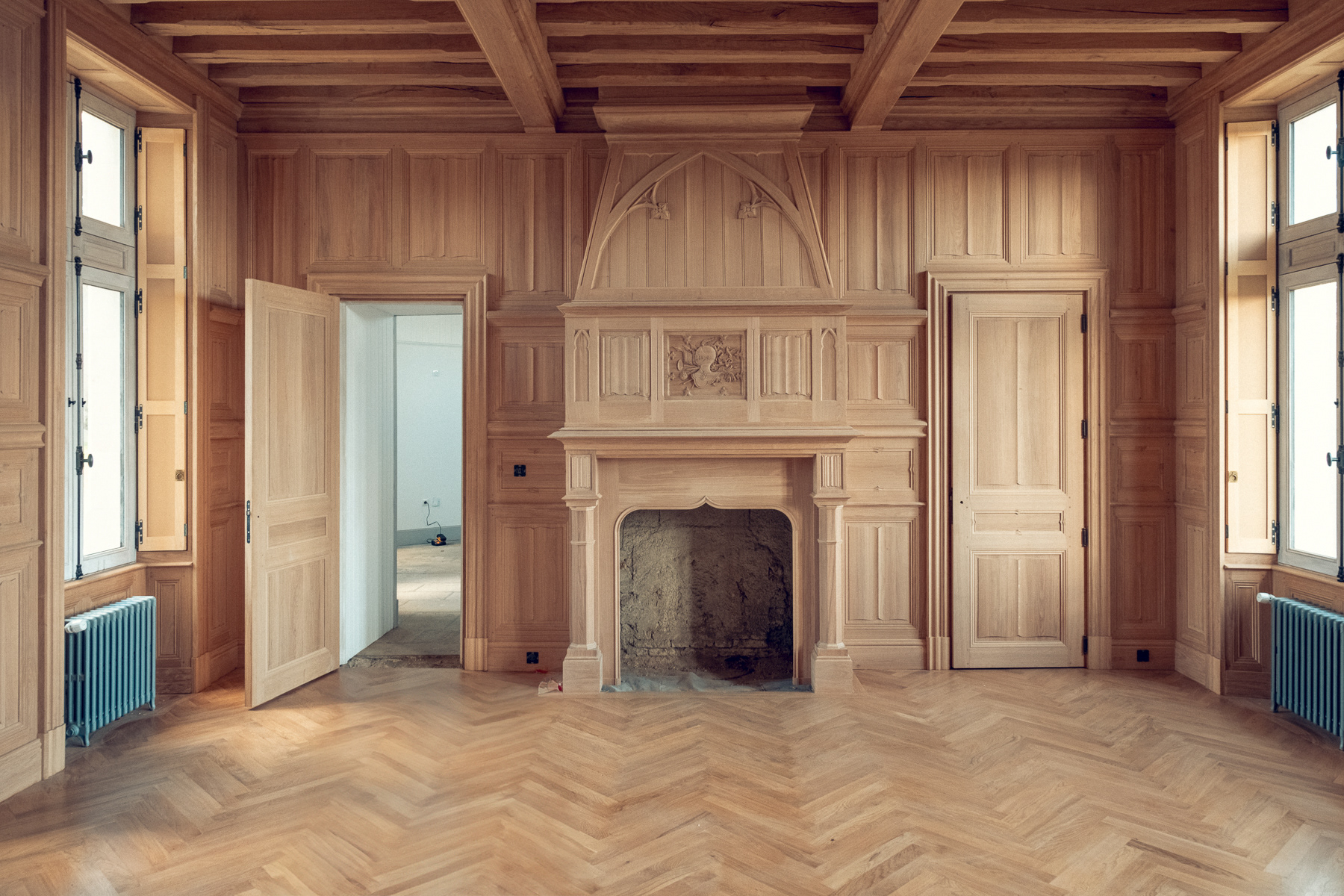 Restauration et rénovation du Château incendié en 2019. Le projet vise à rétablir les charpentes, les planchers et les boiseries dans leur état d’origine. Le reportage a été réalisé pendant le chantier avant réception du second œuvre.