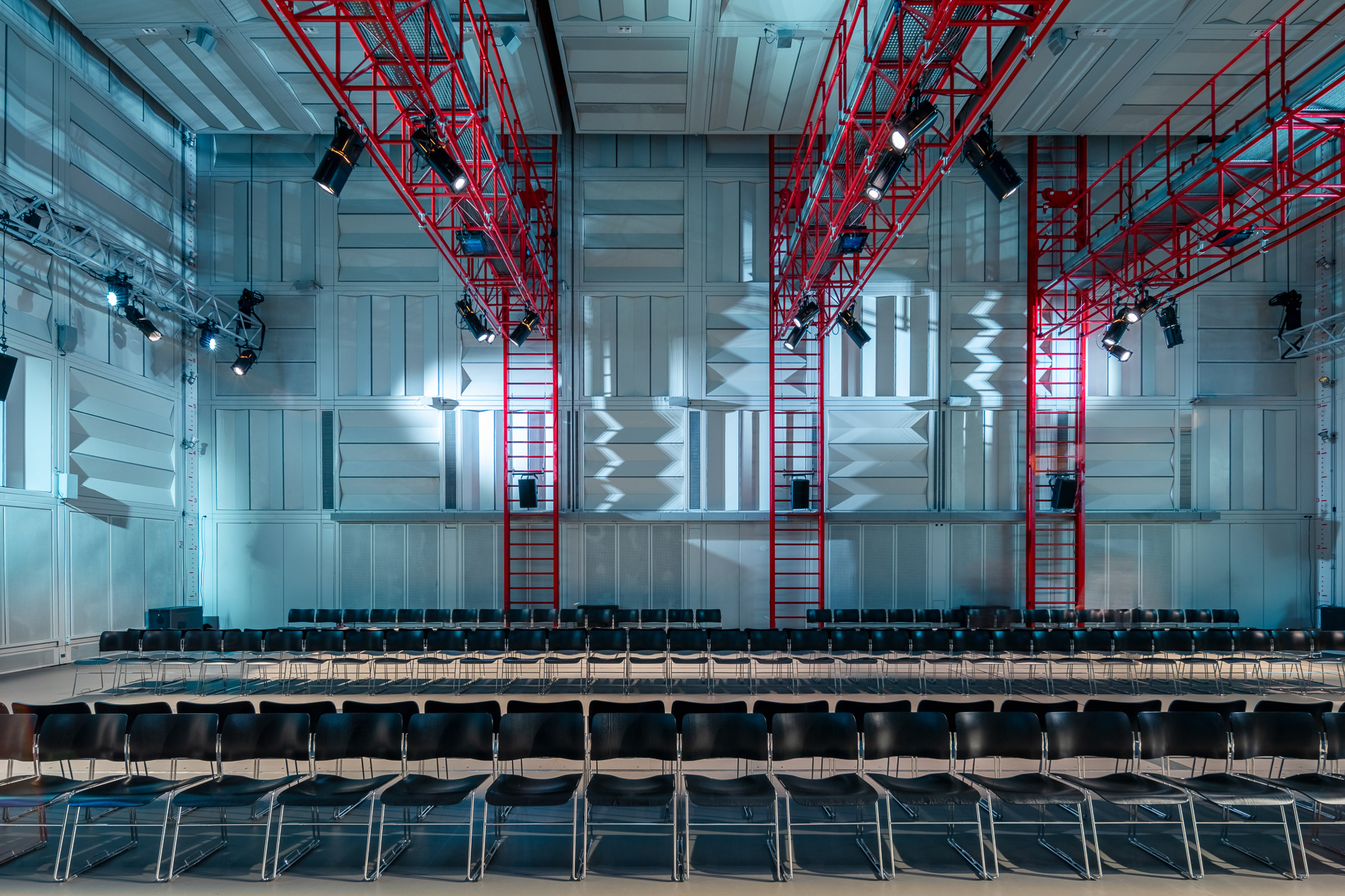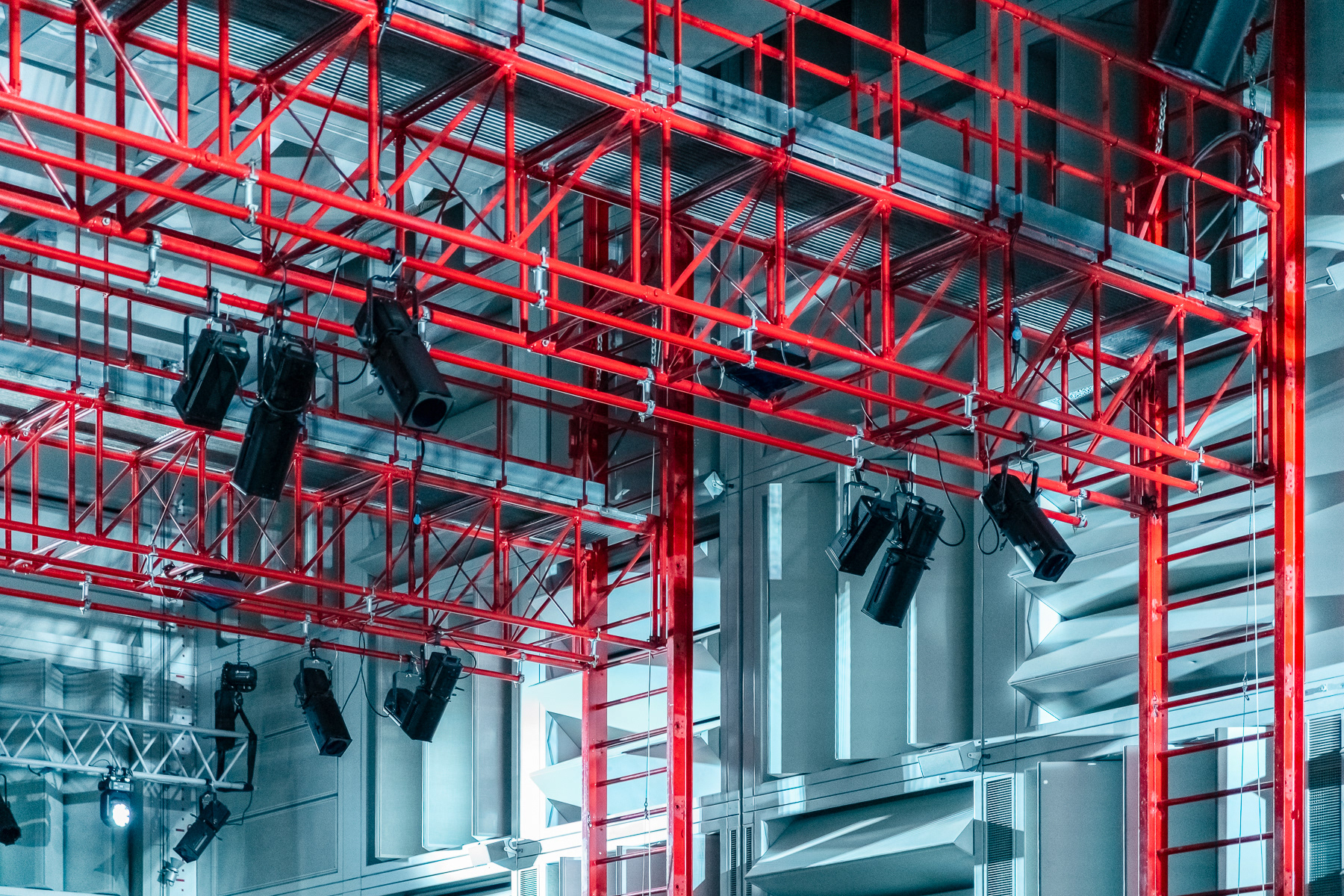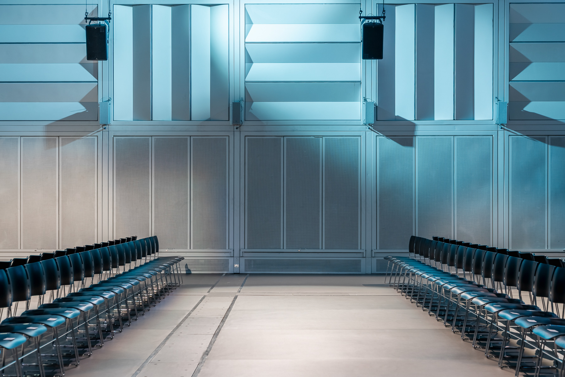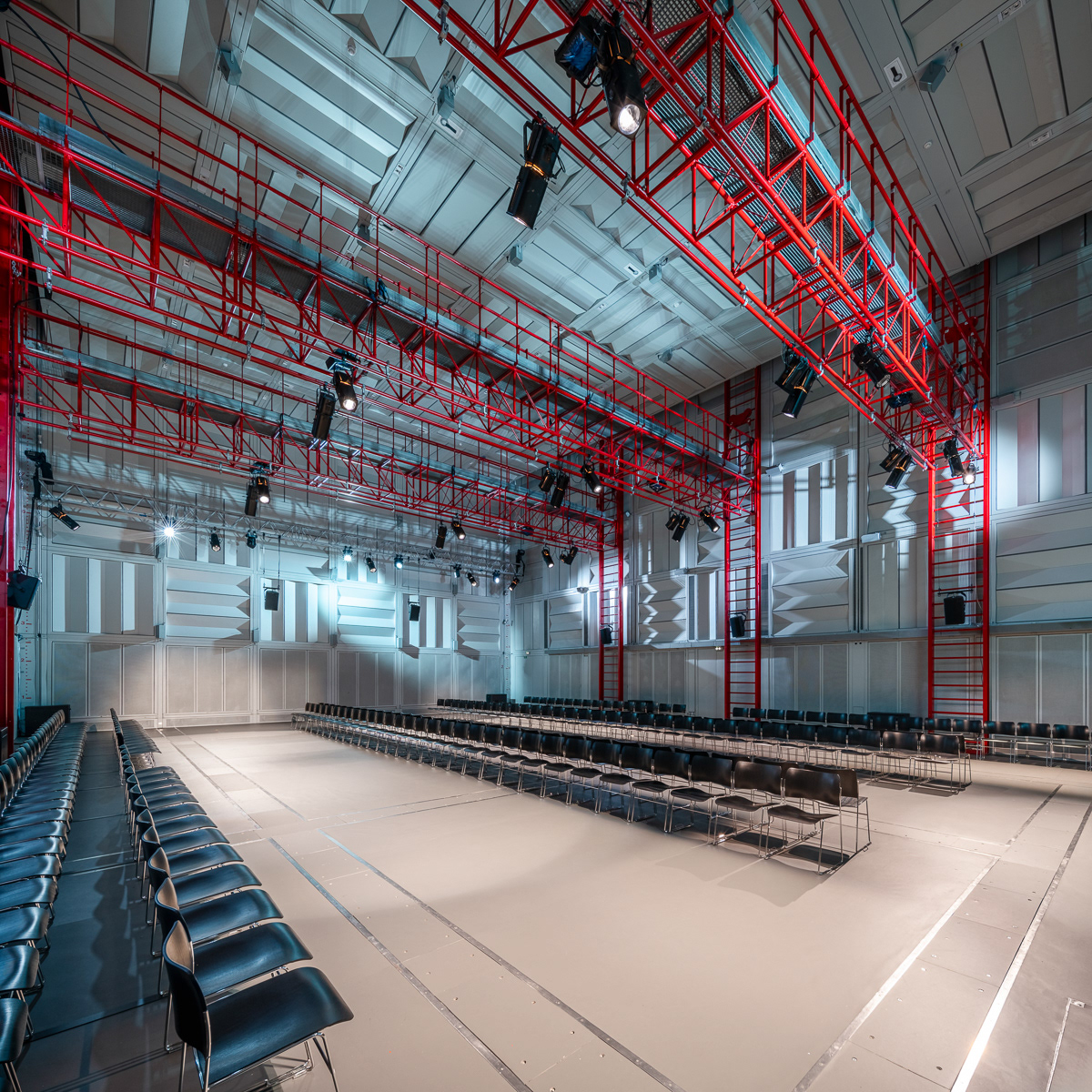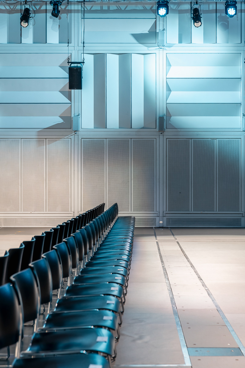 Scénographie du défilé CFCL réalisée par Petit Ami pour la Fashion Week automne-hiver 2025-26. Les images ont été réalisées pendant les répétitions du défilés.