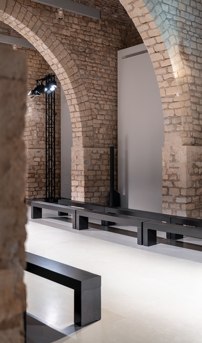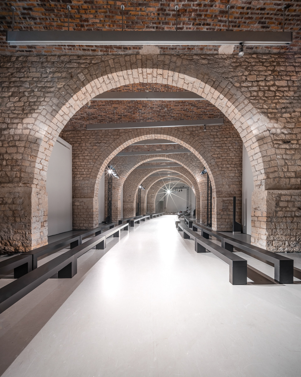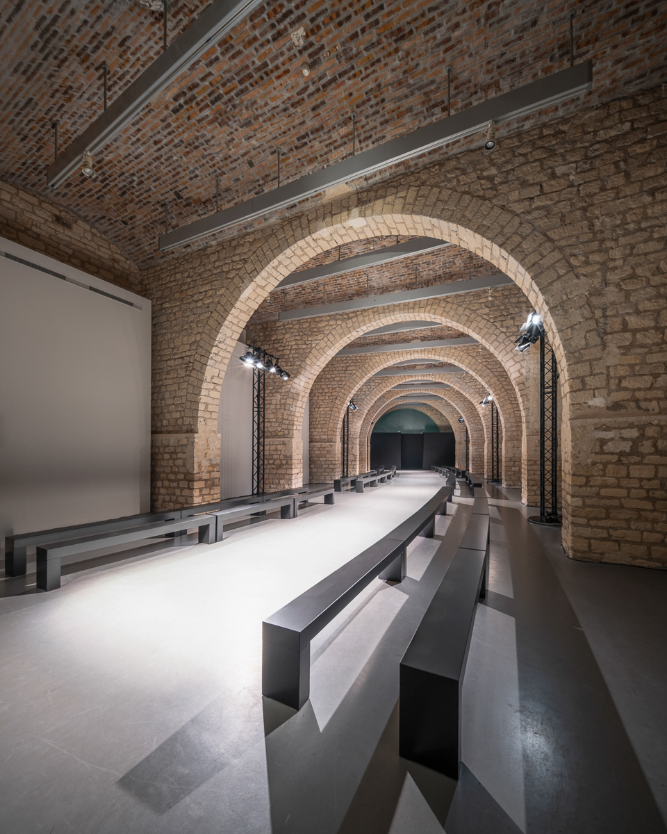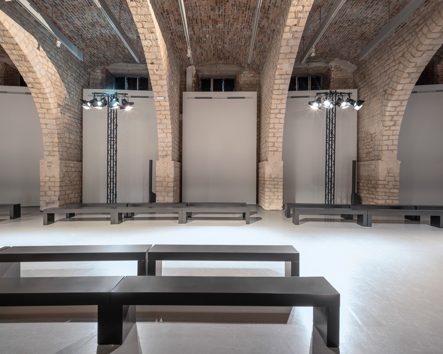 Scénographie du défilé Uma Wang réalisée par Petit Ami pour la Fashion Week automne-hiver 2025-26. Les images ont été réalisées pendant les répétitions du défilés.